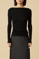 Ava Extra Fine Wool Boatneck Sweater in Black