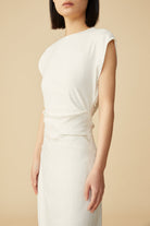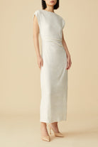 This ‘Gianna’ minimalist dress is the modern wardrobe hero that fit for the office and beyond. This sleek style comes with strong symmetric shoulders, with gently draped details that guide the eye across your figure and highlight your waist. Complement with statement earrings and elegant sandals or mules.
