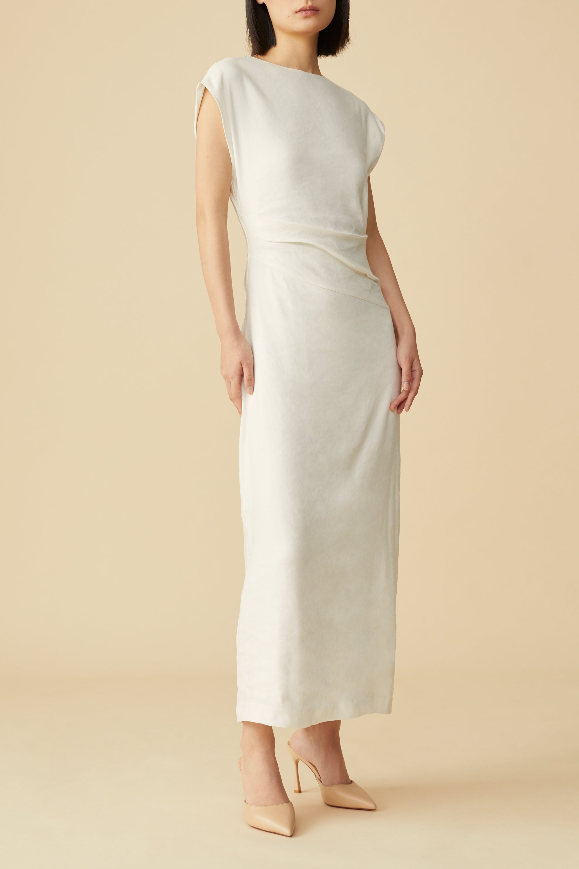 Gianna Linen Midi Dress in White