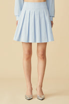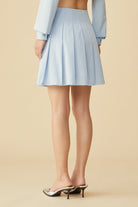 Evelyn Tencel Pleated Mini Skirt in Blue