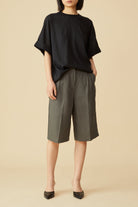 Madison Linen Pleated Bermuda Shorts in Gray