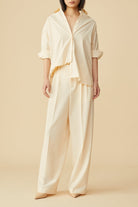 This ‘Cora’ oversized shirt is cut from 100% cotton in an elegant ‘ivory’ hue. It's been designed for an oversized fit and has a curved hem that's longer at the back which allows you to leave it untucked. Style yours with matching pleated pants for the office or white shorts on casual days.